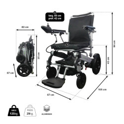 Le Motorlight se plie et se déplie en 3 secondes pour un chargement facile dans un coffre. Son châssis aluminium, ses 2 moteurs 180 W et sa batterie lithium offrent une autonomie jusqu’à 21 km et une vitesse max. 6,4 km/h. Les grandes roues AR Ø30 cm / AV Ø20 cm (bandages pleins souples) améliorent le confort sur sols urbains. Livré avec antibascule et sac de transport.